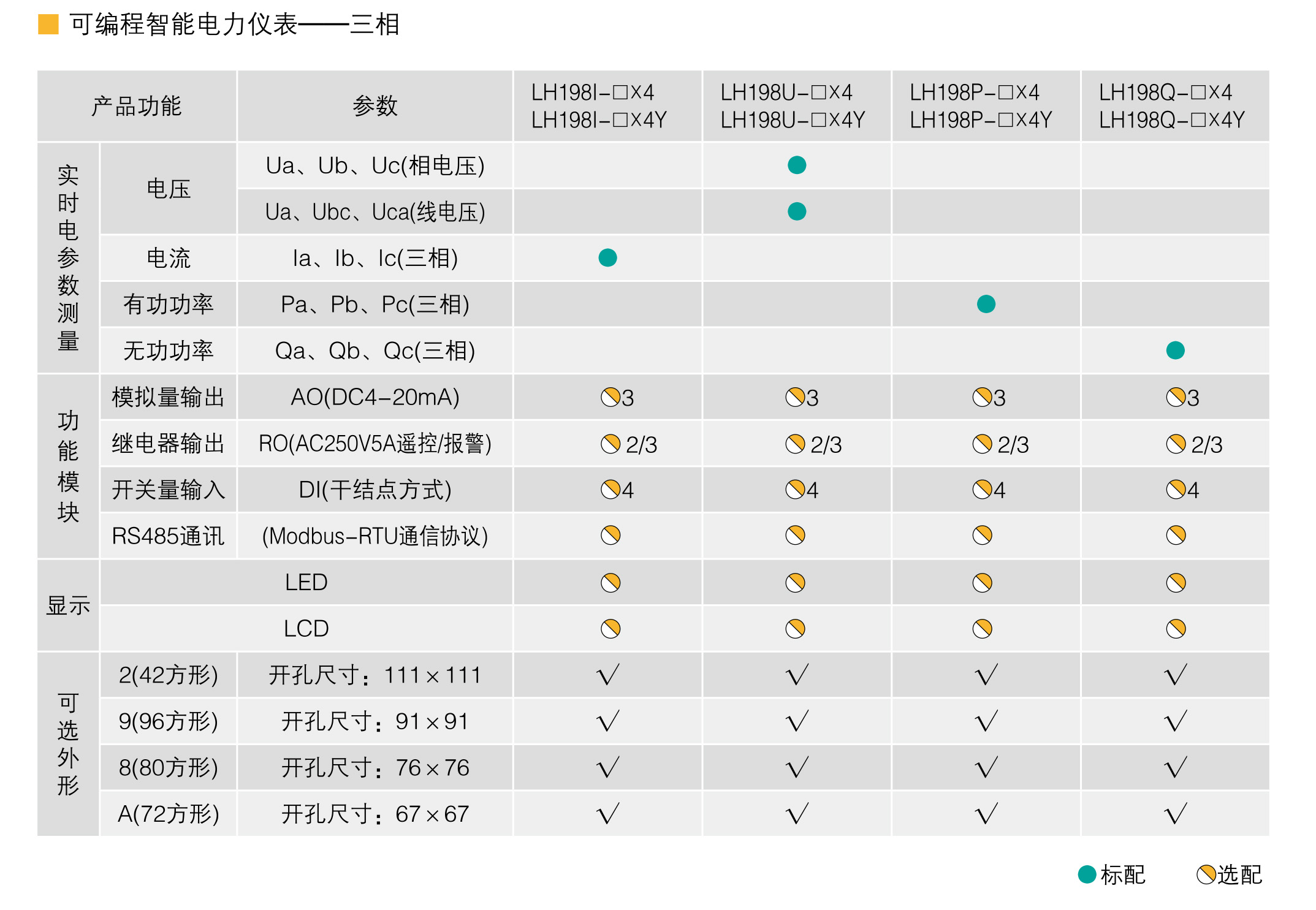 该系列仪表主要是对电网中对电流、电压、功率、频率、功率因数等电参量的测量和显示,具有显示直观,精度高、稳定性好、抗震动等优点,交流真有效值测量;选配RS485通讯接口,采用标准Modbus-RTU协议,也可将电量信号转成标准的直流模拟信号输出,或带开光亮输入/输出,继电器输出等功能。