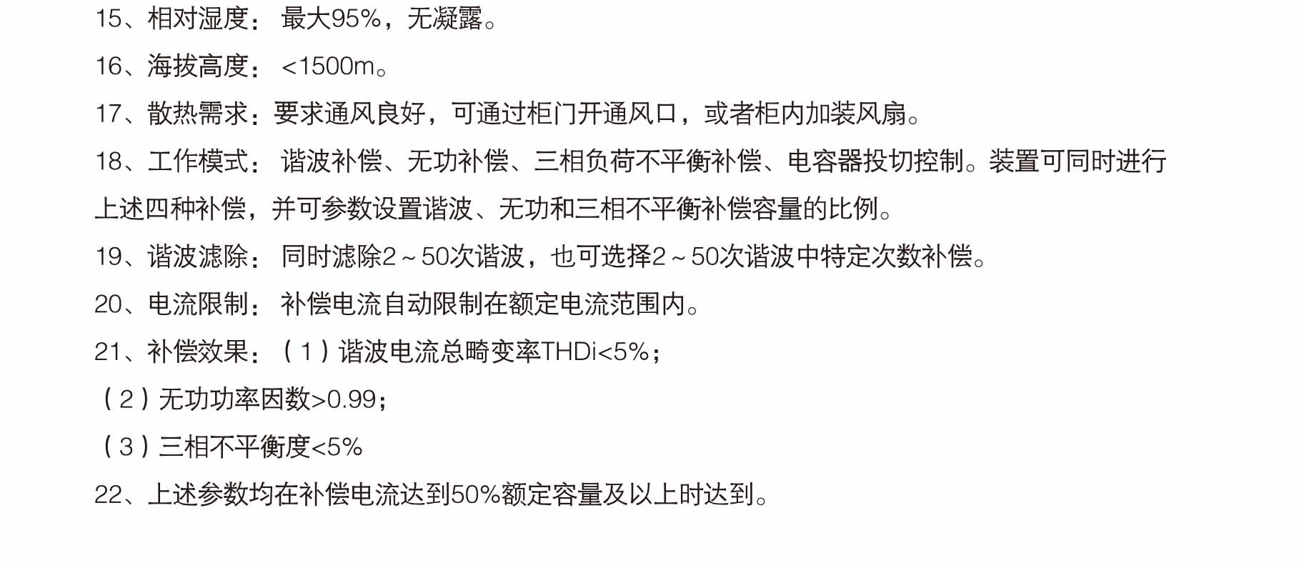 4、额定容量内补偿后系统三相有功负荷电流不平衡度小于5%。