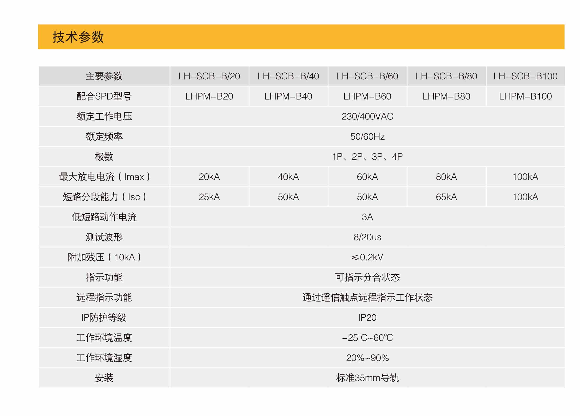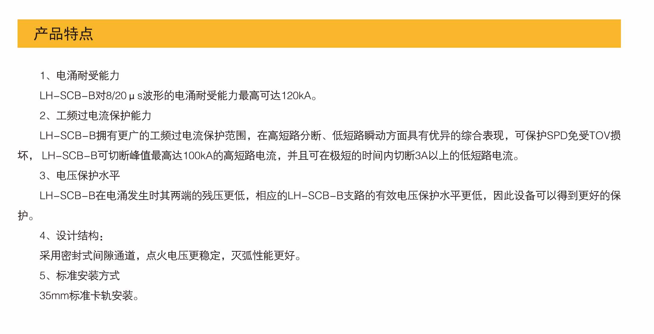 浪涌后备保护器(简称SCB ),LH-SCB系列浪涌保护器适用于交流50/60Hz,额定电压40OV以下的供电系统中,用于保护因SPD短路失效或线路因TOV而出现的工频短路。适应于工业、建筑、民航、金融、证券、数据中心、电信、机房、港口、轨道等系统的电源防护及信号防护,防止因防雷器劣化和电网故障引起的火灾隐患,解决了因雷电引起的后备保护装置误动作造成的防雷器失效问题。